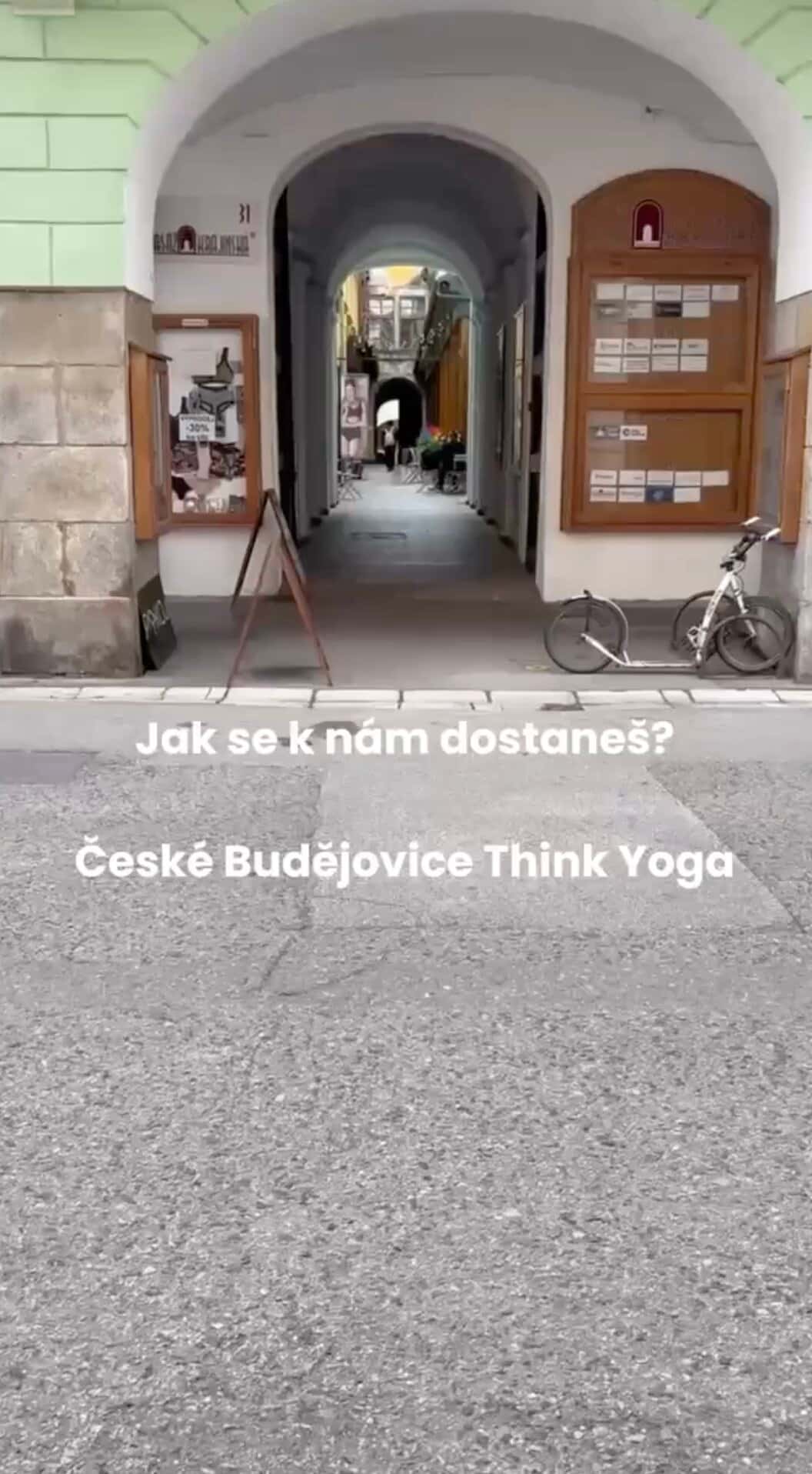 Think Yoga je jógové studio v srdci Českých Budějovic. Vchod se nachází v průchodu mezi ulicí Krajinskou a Českou. V průchodu po pravé straně projdete prosklenými dveřmi. Za nimi se vydáte opět hned doprava. Po schodech vyjdete do druhého patra, kde už na vás budou čekat štěňátka! 🧘🏼♀️